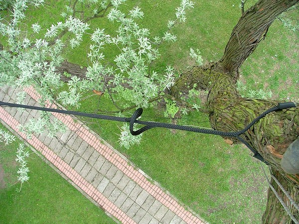 Do vrchní části koruny se instaluje pletené polypropylenové lano, které umožňuje pohyb větví při větru, ale zároveň zabrání rozlomení.